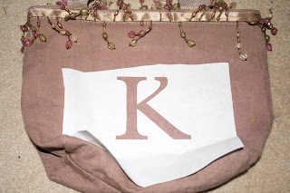 1st I cut out an initial with the Cricut with Medium Speed, depth, and pressure. Cut with the waxy side up and also use the flip feature.